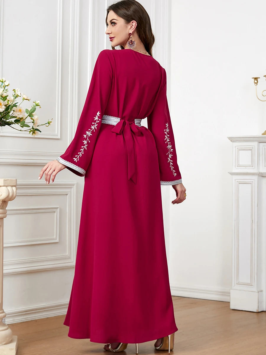 Joliba - Zahriya est brodé avec une extrême précision, d'où la fleur est placée sur la jalabiya, qui se trouve sur le devant et derrière de la jalabiya, et sur les mains de l'arrière et du devant, et il est disponible sur une ceinture, ce qui vous garantit l'élégance. en le portant.