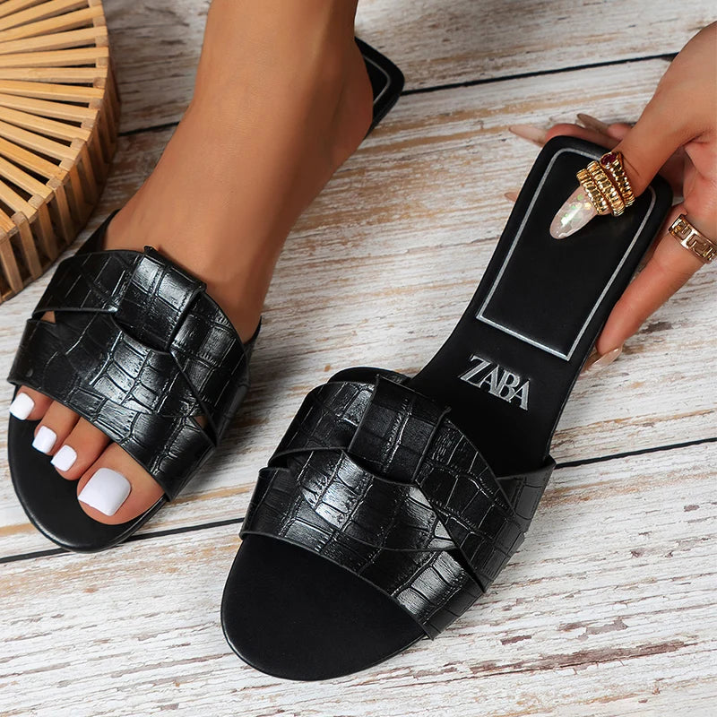 Style sans effort : avec un design chic et accrocheur, ces sandales plates à enfiler sont faciles à mettre et à enlever. Leur look tendance fera tourner les têtes partout où vous allez.